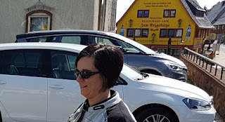 Erzgebirge. Wir machen Urlaub im Motorradhotel www.Tautewalde.de, sind heute mit Hotelchef und Tourguide Enrico unterwegs und machen Rast in Altenberg 750m ü.N.N. Es ist warm hier oben, obwohl die Temperatur in der Nacht zuvor nur knapp über dem Gefrierpunkt lag.